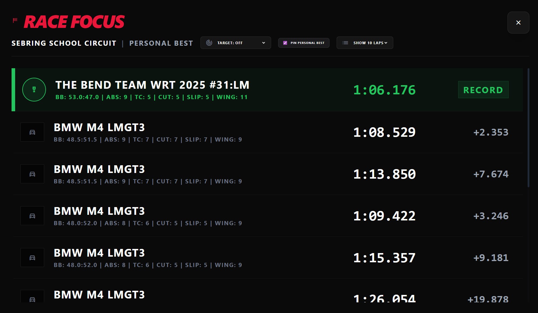 Our goal is to create a lightweight tool that automatically logs your laps, saves your setups, and makes it easy to analyze your performance.